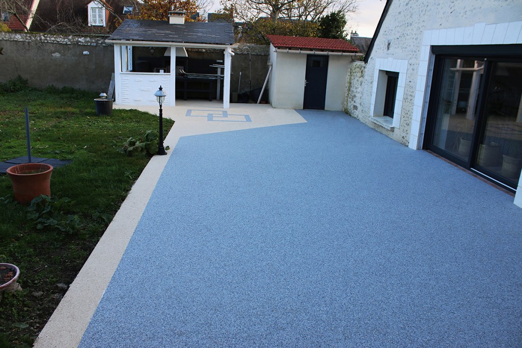 Explorez notre gamme de revêtements perméables, incluant la résine drainante, le béton drainant, le gazon synthétique, et des aires de jeux avec des sols coulés amortissants.
